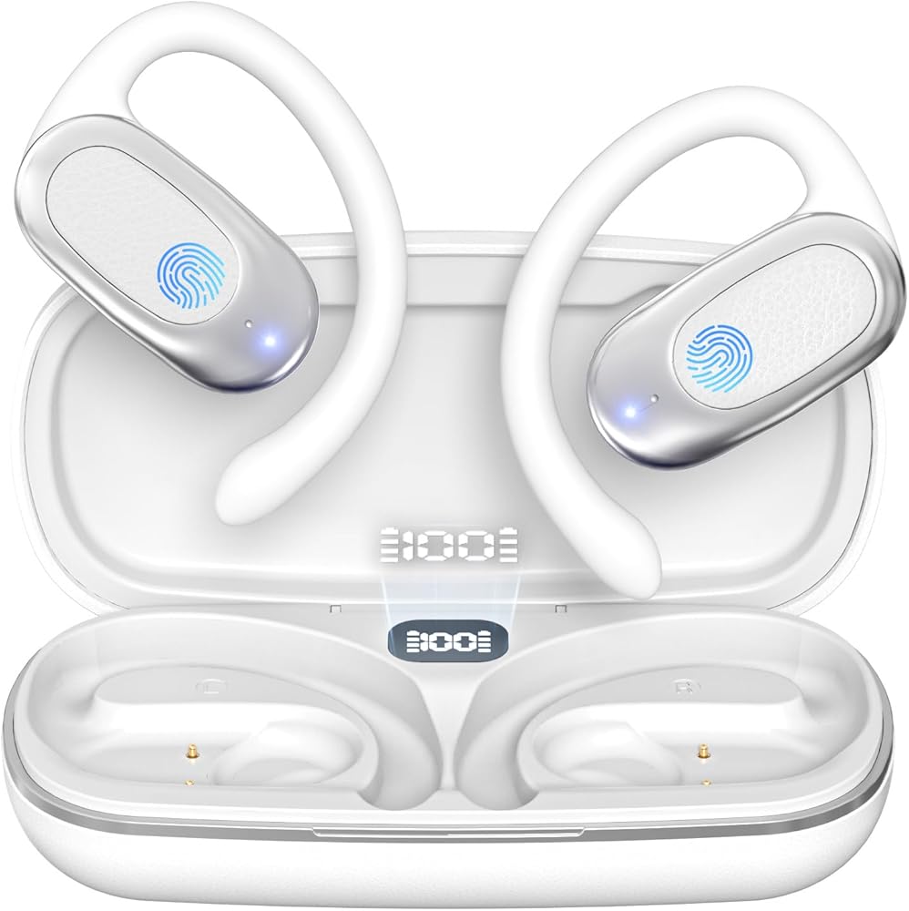 Open Ear Bluetooth Headphones Stereo Sound Clear Call Air-Conduction Wireless Charging Case LED Digital Display Ear Hook Wireless Earbuds with Microphone Waterproof Earphones for Sport Workout Running