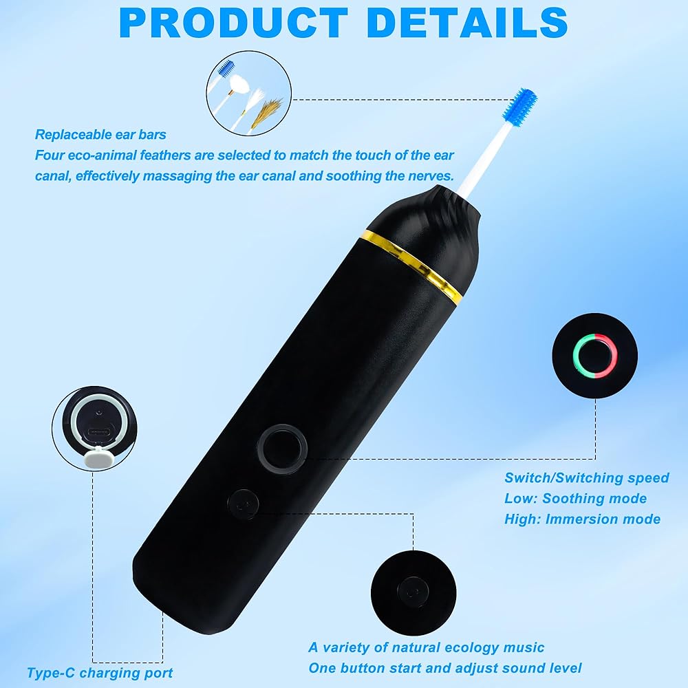 TopQuaFocus Electric Decompression Ear Picker,Electric Ear Cleaner Earwax Removal Kit, Ear Cleaning Tool with A Variety of Soothing Nature Music and 4 Eco-Animal Fluffs