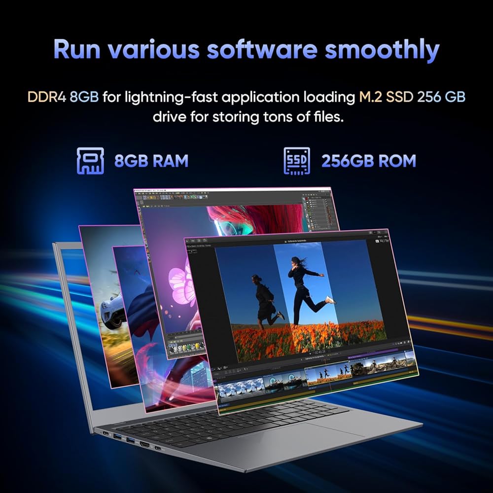 Window 11 Pro Laptop PC with 14.1 inch FHD Display, 8GB LPDDR4 256GB SSD, Celeron J4005 (up to 2.7GHz) 丨3xUSB A丨RJ45丨HD Port丨Wi-Fi 5丨BT5.1, Ultra Thin and Light Notebook Computer - Gray