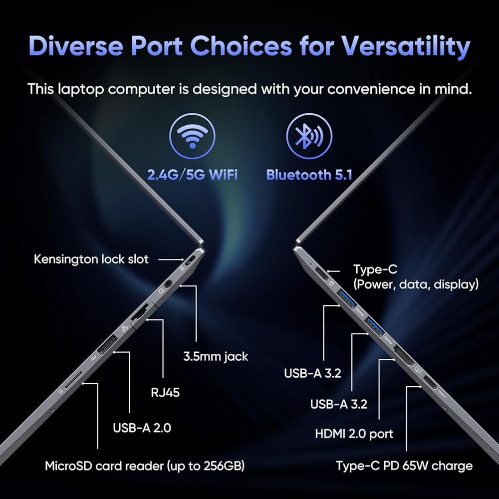 • 【Other Feature】Integrated 720p Webcam with physical privacy camera shield; Includes Window 11 pro (64-bit); QWERTY keyboard Ameican English; BT5.1; wi-fi 5;12V/2A DC_in power adaptor; weight of 1.34KG/2.95lbs; 7.6V/4000MA battery.
