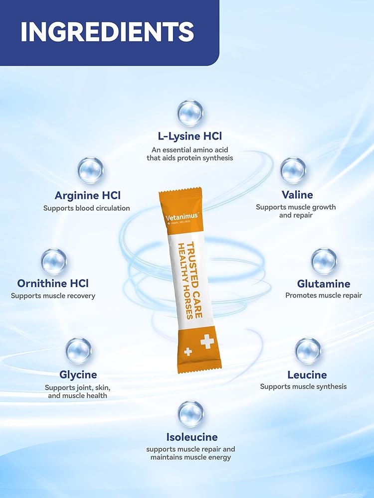 Faster Muscle Recovery: Speeds up recovery after exercise while maintaining muscle mass, ensuring your horse stays in top condition with defined, beautiful toplines.