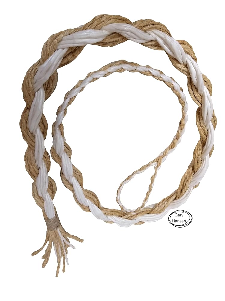 Sisal and White Poly mix Saddle Bronc Rein Great feeling Bronc Rein Normal size Slim necks 6 1/2 - 7 feet in length Our Reins are hand braided in the USA at time of order for all levels of Rodeo