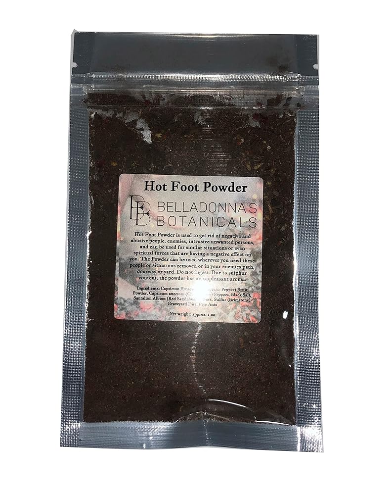 Hot Foot Powder is used to drive way unwanted people and enemies in order to keep peace by eliminating troublemakers. Keep away from your skin, eyes, mouth, and from children and pets due to the caustic nature of some of the ingredients .