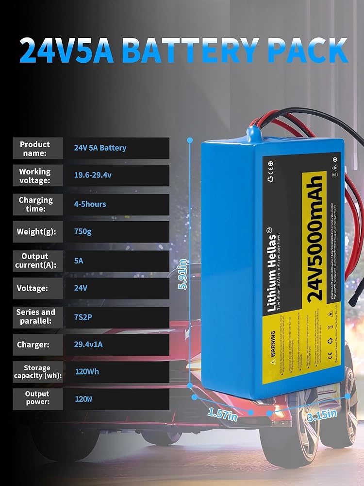 Multi-Layer Safety Assurance: Your safety is our priority. The 24v 5ah lithium battery features built-in BMS protection that safeguards against overcharge, over-discharge, over-current, and short circuits. Additionally, its environmentally friendly ternary lithium composition eliminates memory effect and minimizes self-discharge, ensuring reliable performance.