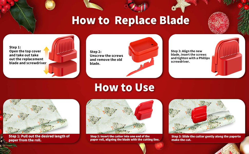 Two-Pack with Four Blades: The package includes two cutting tools and two replaceable blades, making it ideal for slicing through gift wrap, kraft paper, glitter paper, metallic paper, and more. Wrapping gifts has never been this effortless!