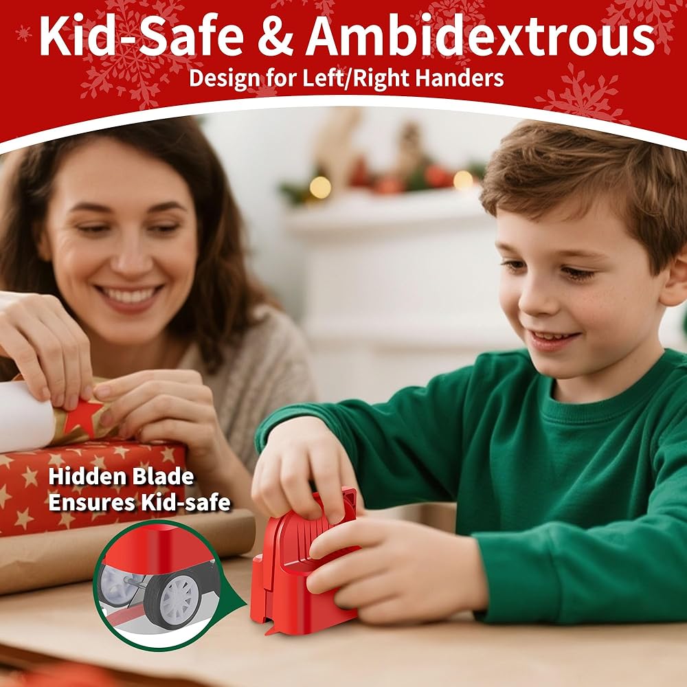 Much Faster & Neater than Using Scissors: The ergonomic design is comfortable to hold and works smoothly whether you're left- or right-handed. It has made the wrapping process more pleasant and bearable, no more jagged edges or wasted paper; BTW, The hidden blade makes it super safe for kids to use if the younger like to help with gift wrapping.