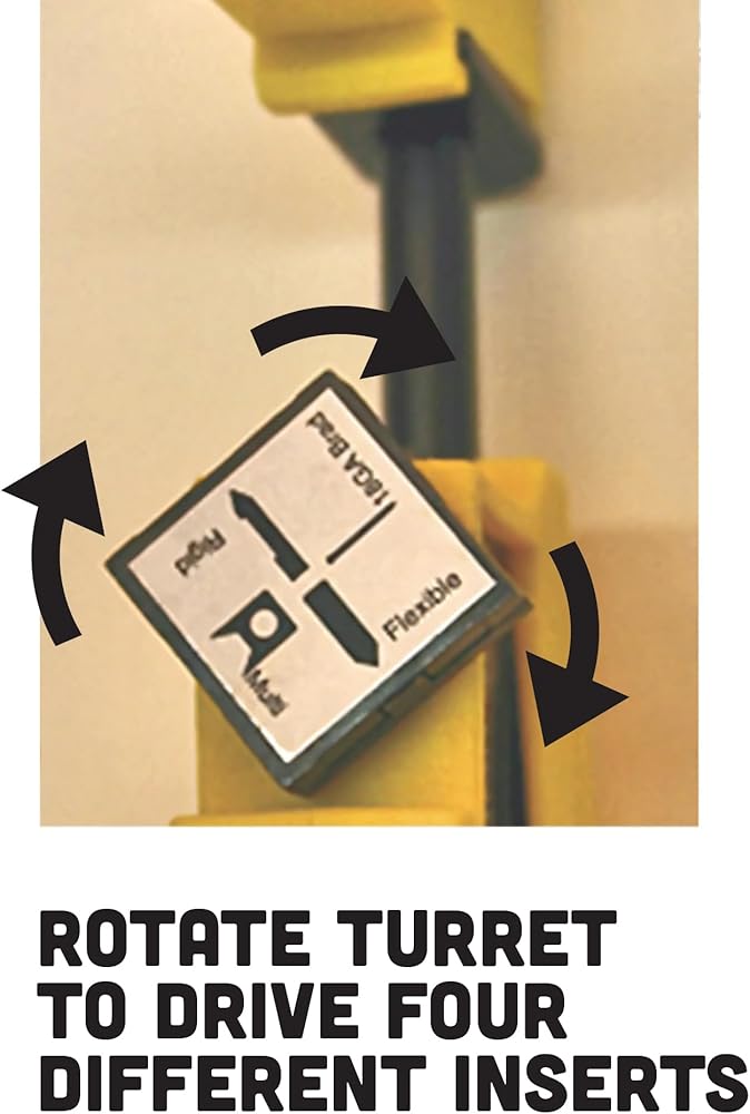 Unique rotating head design drives four different popular insert types to secure glass, artwork and backing material into the frame. For use on hard or soft wood picture frame moulding. Load each point individually and use the squeeze clamp mechanism to drive points. Use on hard or soft wood and drives inserts into moulding up to 2.5" (6 cm) in width. Uses inserts F9 Multi Point, F10 Rigid, and F11 Flexible. Also accepts common brad nails.
