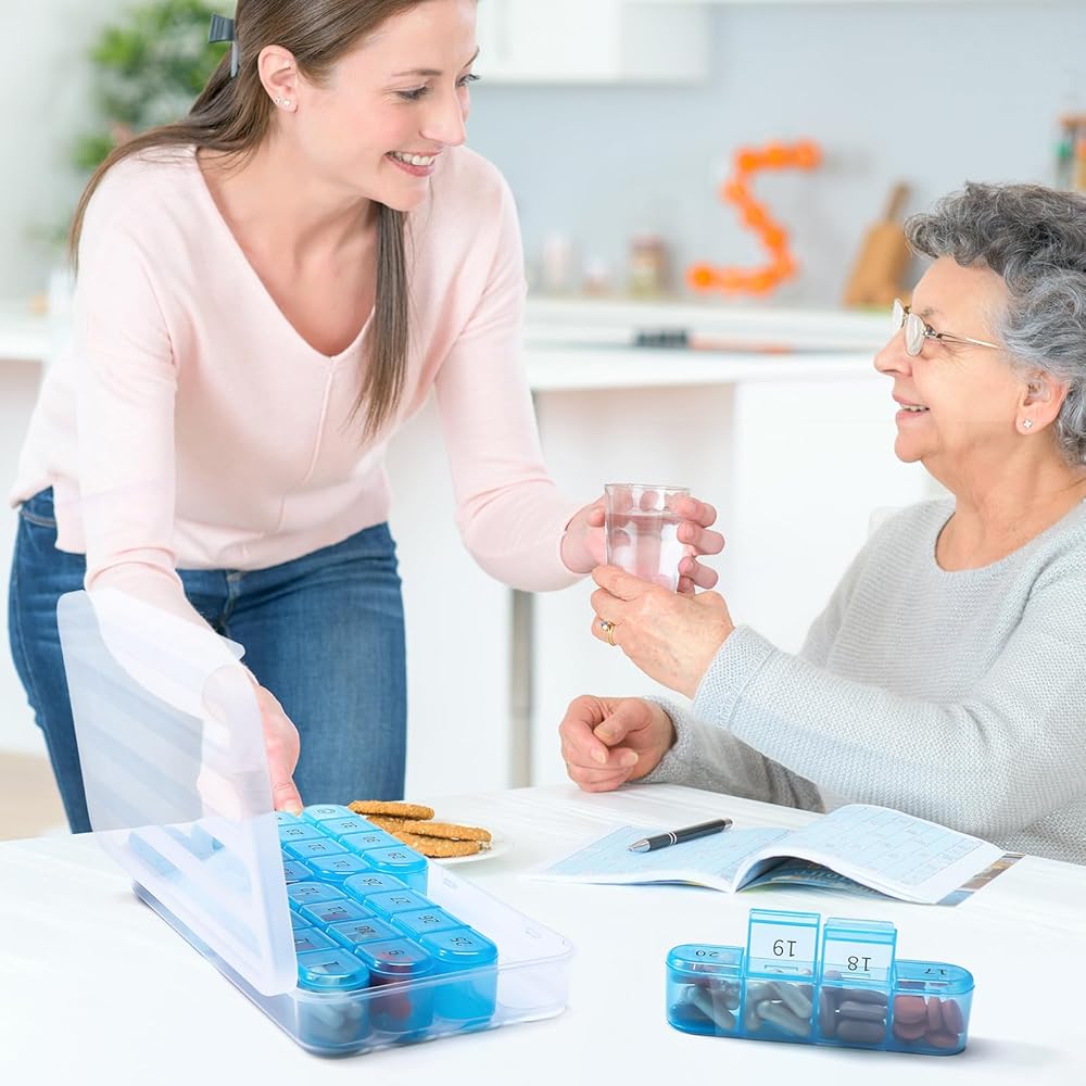 [Super Easy to Use] Our monthly pill box medication organizer is designed for ease of use. This one month pill box organizer opens and closes easily while securely keeping your medication in place. This user design is friendly for the elderly, patients and travelers can open the 1 month pill organizer.