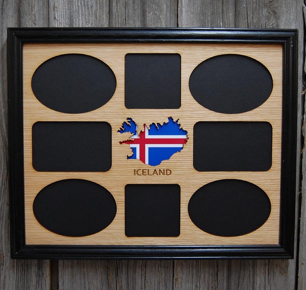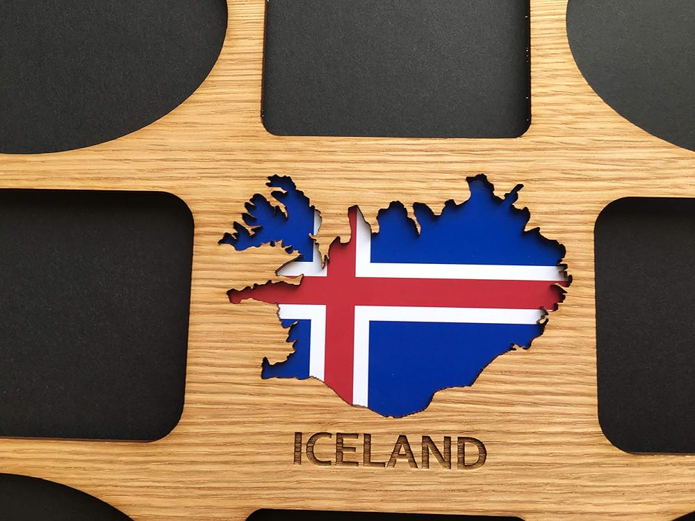 - [HANDMADE] England Picture Frame has the country cut out in the middle with the country flag behind it and is surrounded by 8 photo openings.