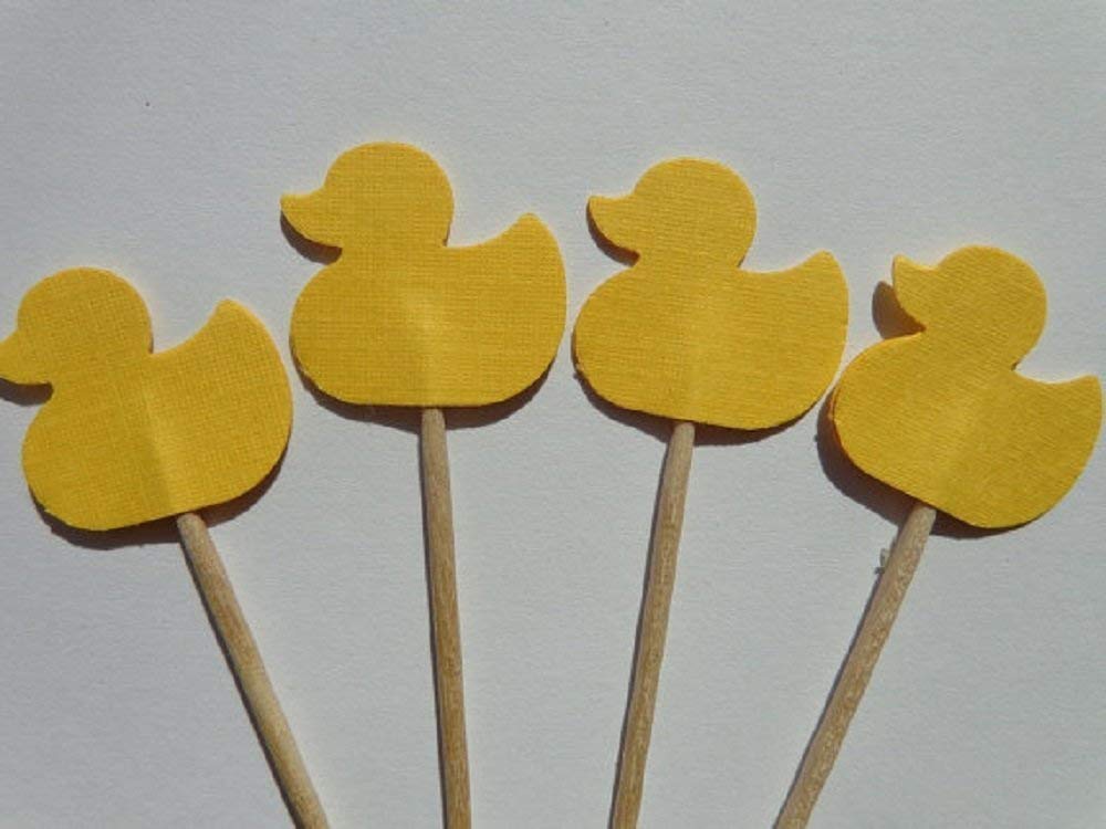24 Small Ducky Cupcake toppers / food picks Perfect for your baby shower! Amount: 24 picks. Size: Total Pick Size approx. 3" tall. Each is double sided - like all of my food picks ~ so they look great from all sides! Colors may vary slightly on computer screen. The key to a great party is in the details! These cute cupcake toppers / food picks are the perfect addition to your food display. They can be used in a variety of deserts. They work well with many different foods too, sandwiches, deviled eggs, cheeses and more. I make each piece with care, right here in the USA! I use quality papers and food safe toothpicks. Simply insert them into foods and add that special something to your special event! Want to see more variety? Check out Sew Pretty in Vermont for hundreds of choices!