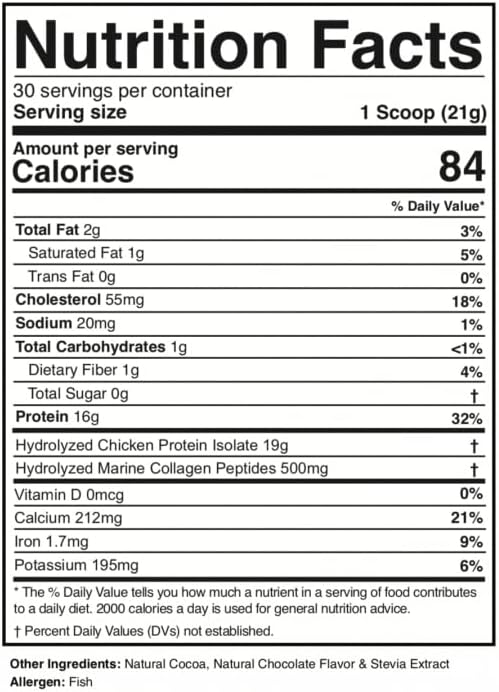 100% Chicken Collagen Powder, Gluten Free, Non - GMO , Lactose Free with no Artificial Flavors