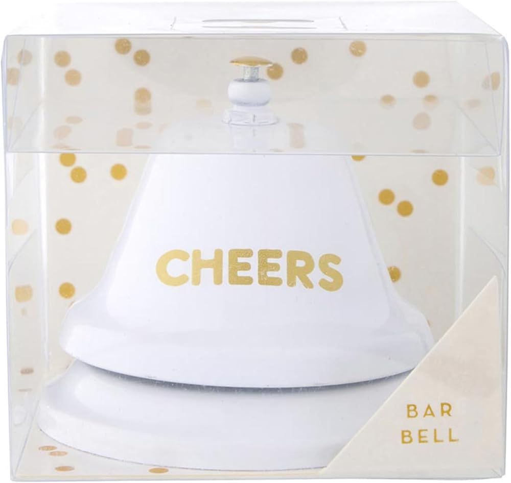 CHEERS High-quality metal service bell in white with gold lettering