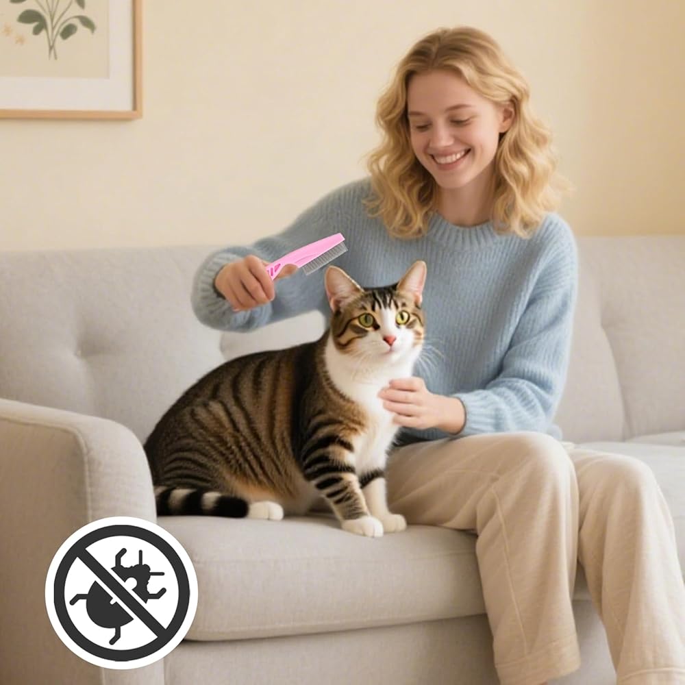 Premium Quality Materials: The teeth of our cat flea comb and dog flea comb are made from high-grade stainless steel, securely embedded in an ergonomic ABS handle. The flea comb for cats features an ergonomic design for a comfortable grip, simplifying grooming while keeping pets calm.