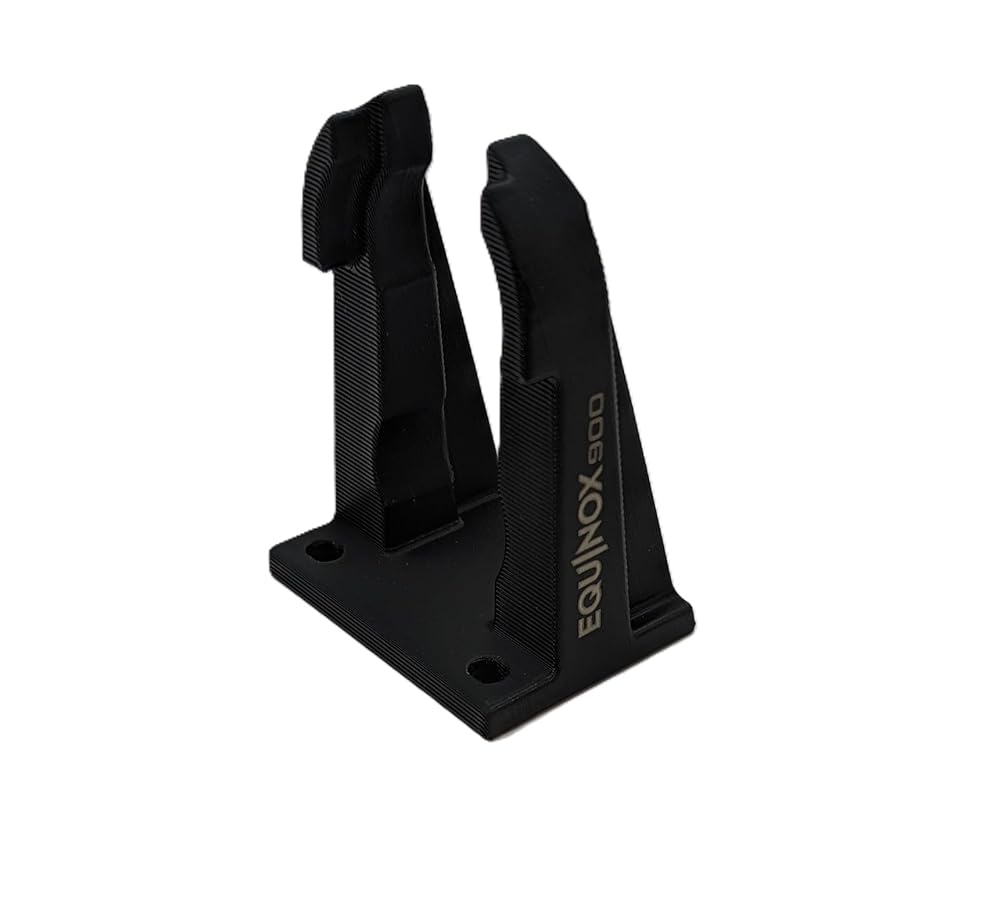 Wall mount hanger custom designed for Minelab Equinox 900 metal detector. Detector clips in and is held securely on the wall.