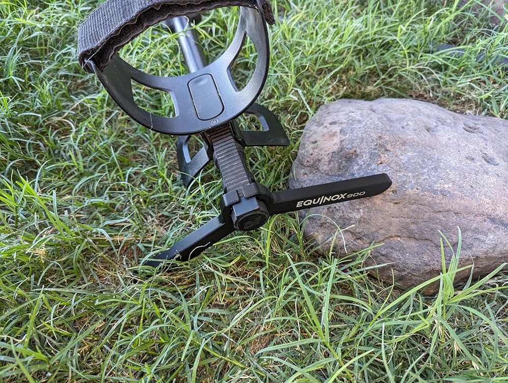 Black PLA Plastic Kickstand for Minelab Equinox 900 Metal Detector. No hardware required, kick stand clips on at the rear of detector. Kickstand will keep your detector from falling over on uneven ground when layed down.