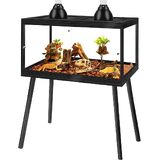 【Spacious Elevated Design】Available in 24", 30", 36", and 48" lengths with a raised 4-legs design(please refer to pic2 for exact size), this habitat offers ample room for reptiles to explore, bask, and hide. Refer to the second image for detailed sizing to select the best fit for your pet. The bottom includes an acrylic liner that makes cleaning easier while keeping the interior tidy.