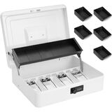DETACHABLE INTERIOR OF THE COIN TRAY: Customize your cash box to perfection with the removable interior compartments of the coin tray. Tailor the configuration to your liking by choosing and keeping only the compartments you need. Adjust the size of each compartment to accommodate various coin denominations or organize your coins in a way that best suits your specific requirements. This versatile feature ensures that your cash box is perfectly suited to your unique needs, making it a convenient and efficient solution for handling and organizing coins.
