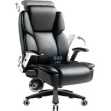 600lbs Big and Tall Office Chair for Heavy People,Heavy Duty Comfy Executive Office Desk Chair with Adjustable Lumbar Support,High Back Reclining PU Leather Computer Chair,Metal Base (Classic, Black1)
