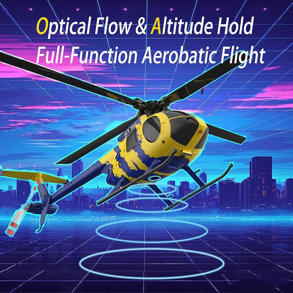 Uses aerodynamic rotor structure and a no-aileron layout for strong lift and automatic airframe balance. Equipped with a 4-channel system and a 6-axis gyroscope for smooth, stable flight.