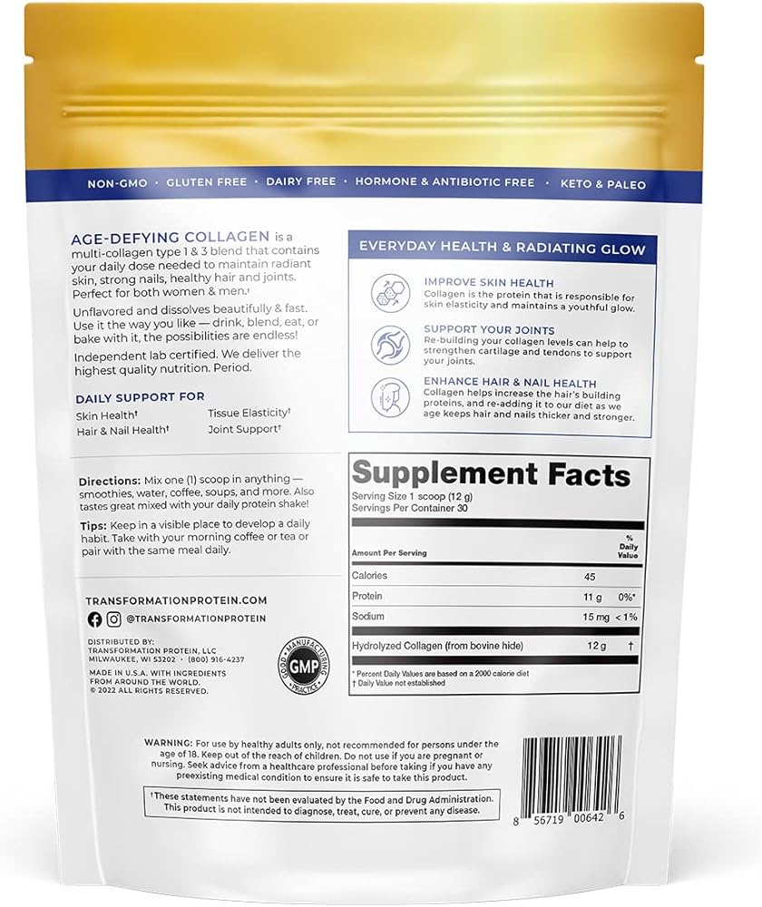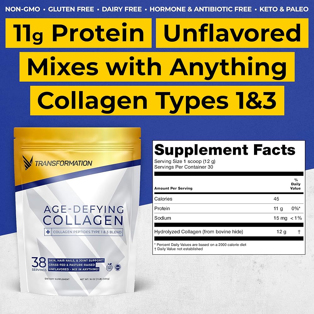 STRONG ON THE INSIDE: As we age, our bodies become less efficient at naturally producing collagen that is needed for effective soft tissue, bones & joints. Making Transformation Collagen Peptides part of your daily diet helps to ensure you are getting enough collagen to support your body's strength & mobility.