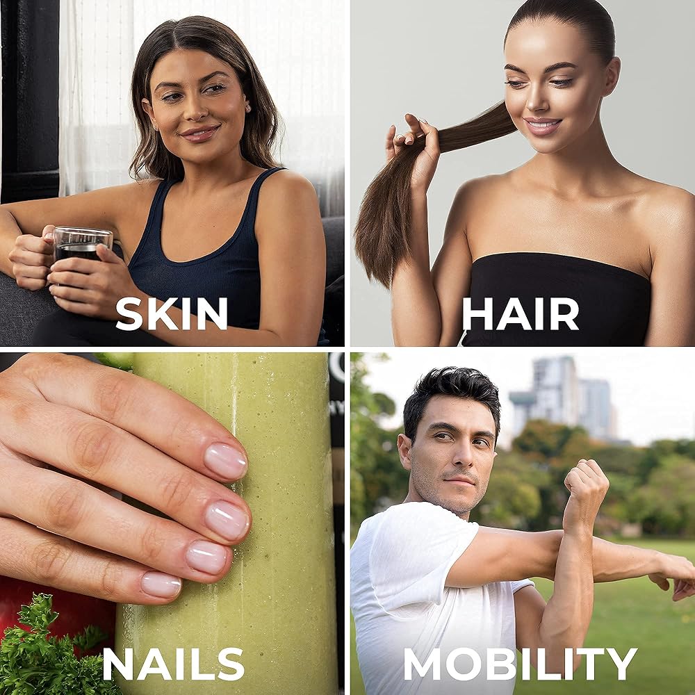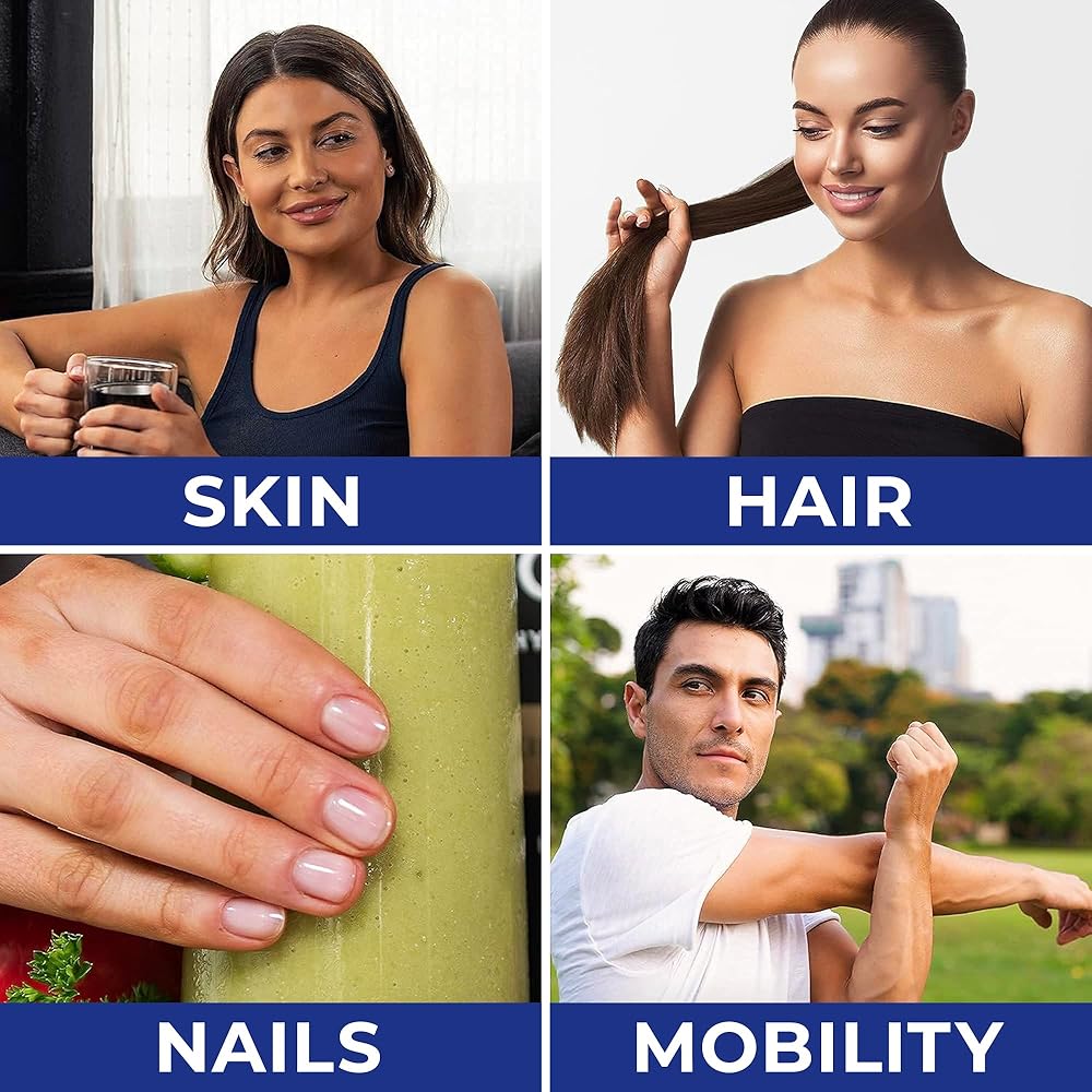 BEAUTY ON THE OUTSIDE: Maintain your youthful glow by using our Collagen Peptides to help restore your skin's natural moisture, elasticity, and smoothness. It also aids in strengthening your hair and nails.