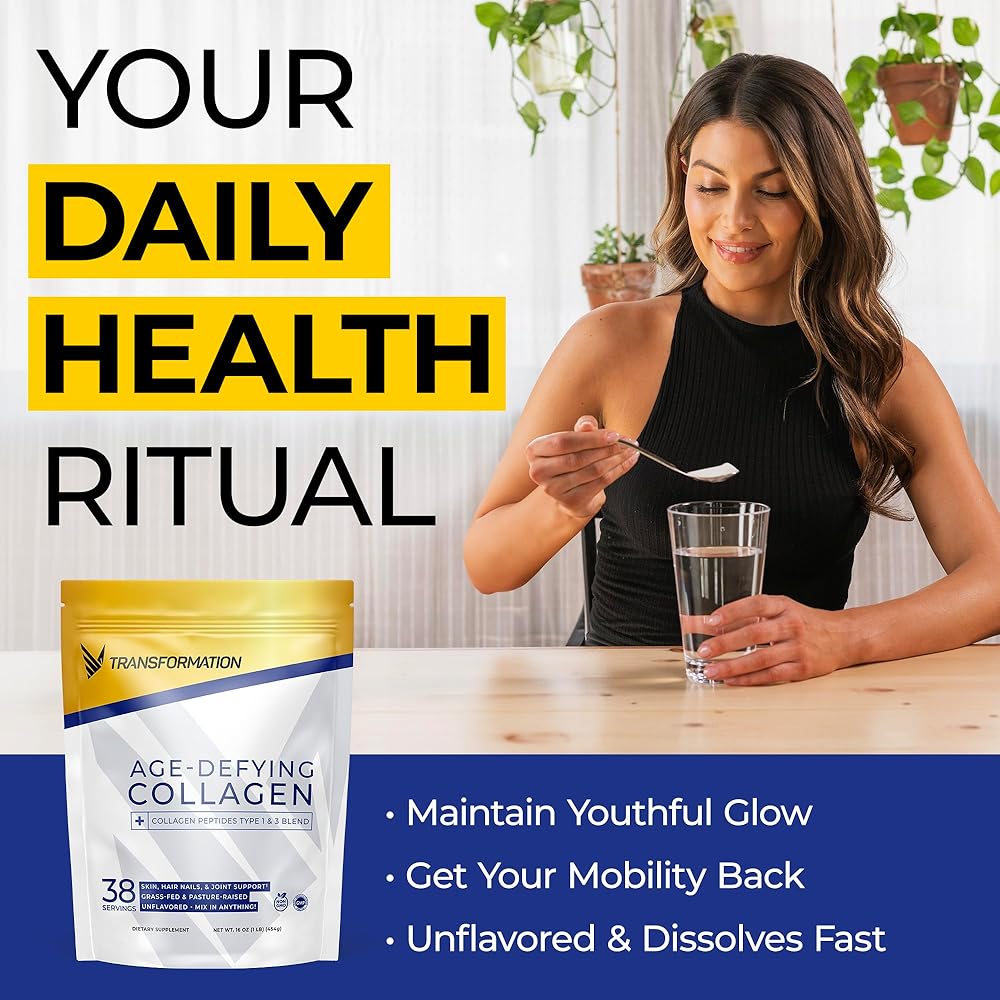 DAILY DOSE OF BEAUTY & HEALTH: Collagen Types 1 & 3 are the most common types in our body. Your body continues to lose its collagen naturally as you age beyond 25. To see results outside and feel results on the inside, make Transformation Collagen Peptides Powder part of your daily dose of health.