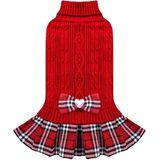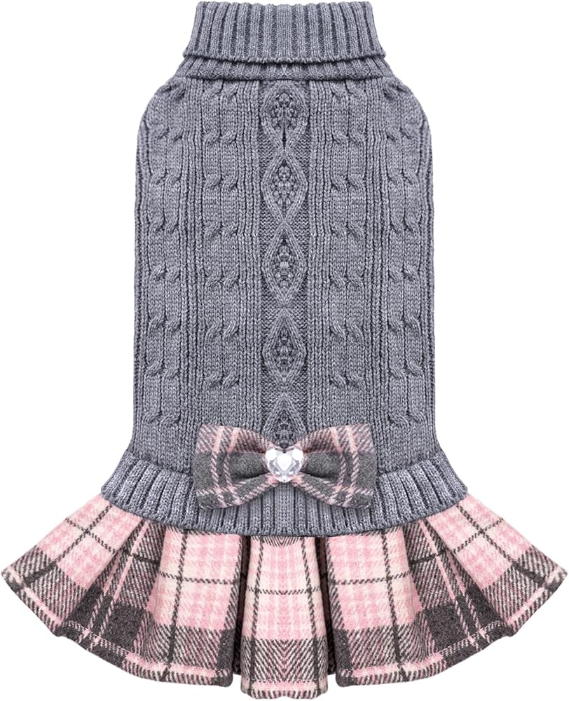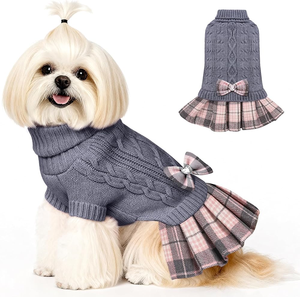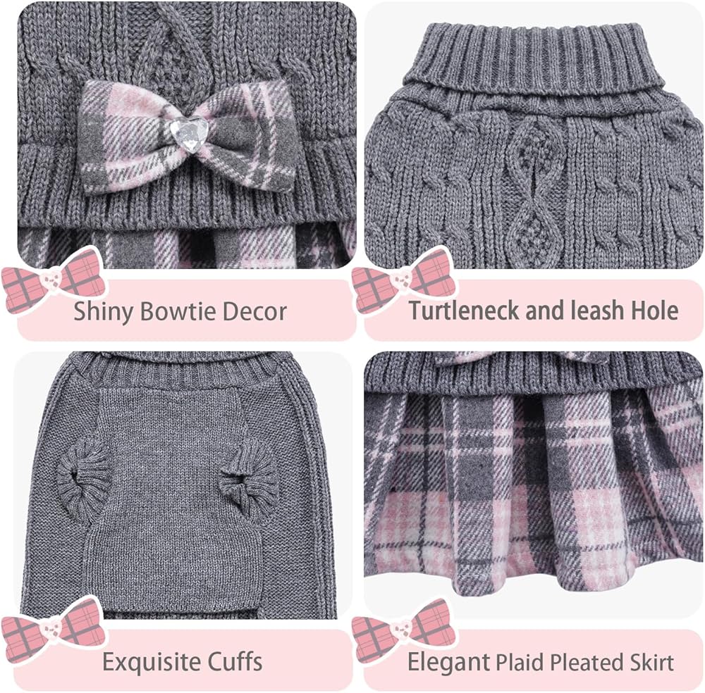 The Center of Attention: Shiny bow and classic plaid pleated skirt are the biggest highlight of WOYYHO small dog knitted sweater dress. This fashionable classic style can match your outfit well, so you can take your fur baby to a party or wedding and make you both the center of attention
