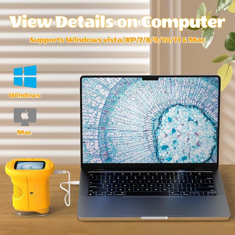 Equipped with a high-resolution lens and 8 adjustable LED lights, this handheld microscope ensures sharp, well-lit images in any environment—indoors or outdoors. Children can explore anytime, anywhere, without worrying about lighting conditions.