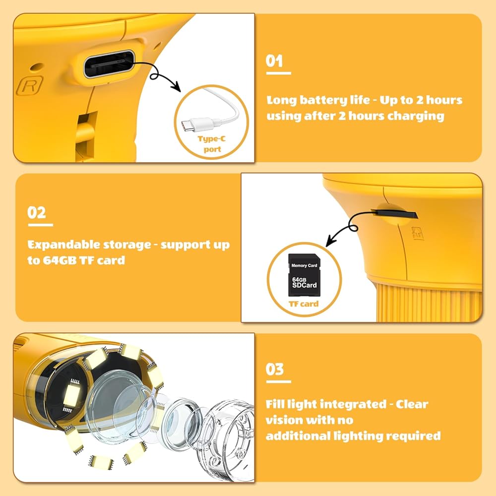 * Storage: Save up to 200 photos internally, supports TF card up to 64GB (not included)