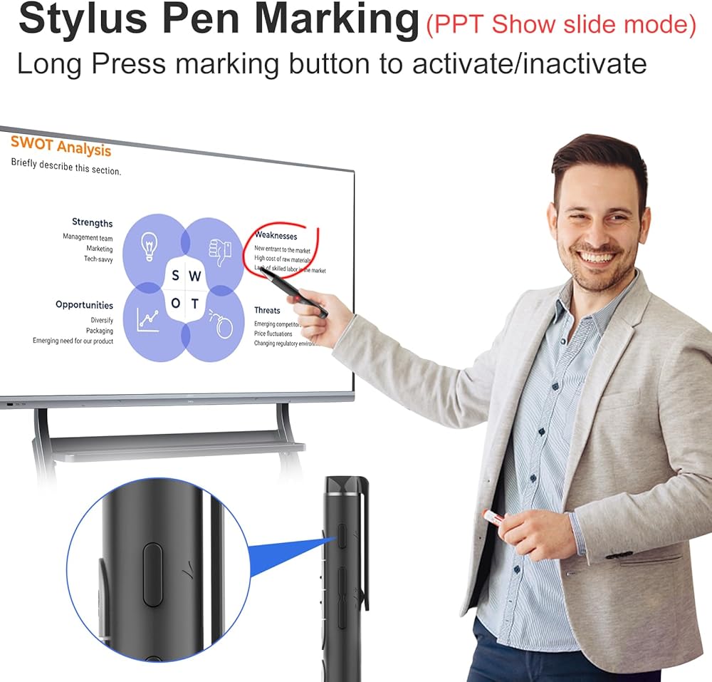 [لشاشة اللمس] أداة النقر للعرض التقديمي مع قلم ستايلس ومؤشر ليزر وقلم لوحة بروميثيان لشاشة اللمس الذكية وجهاز تحكم عن بعد لللوحة الذكية، جهاز تحكم عن بعد للمقدم اللاسلكي لأجهزة Android/Windows/Mac
