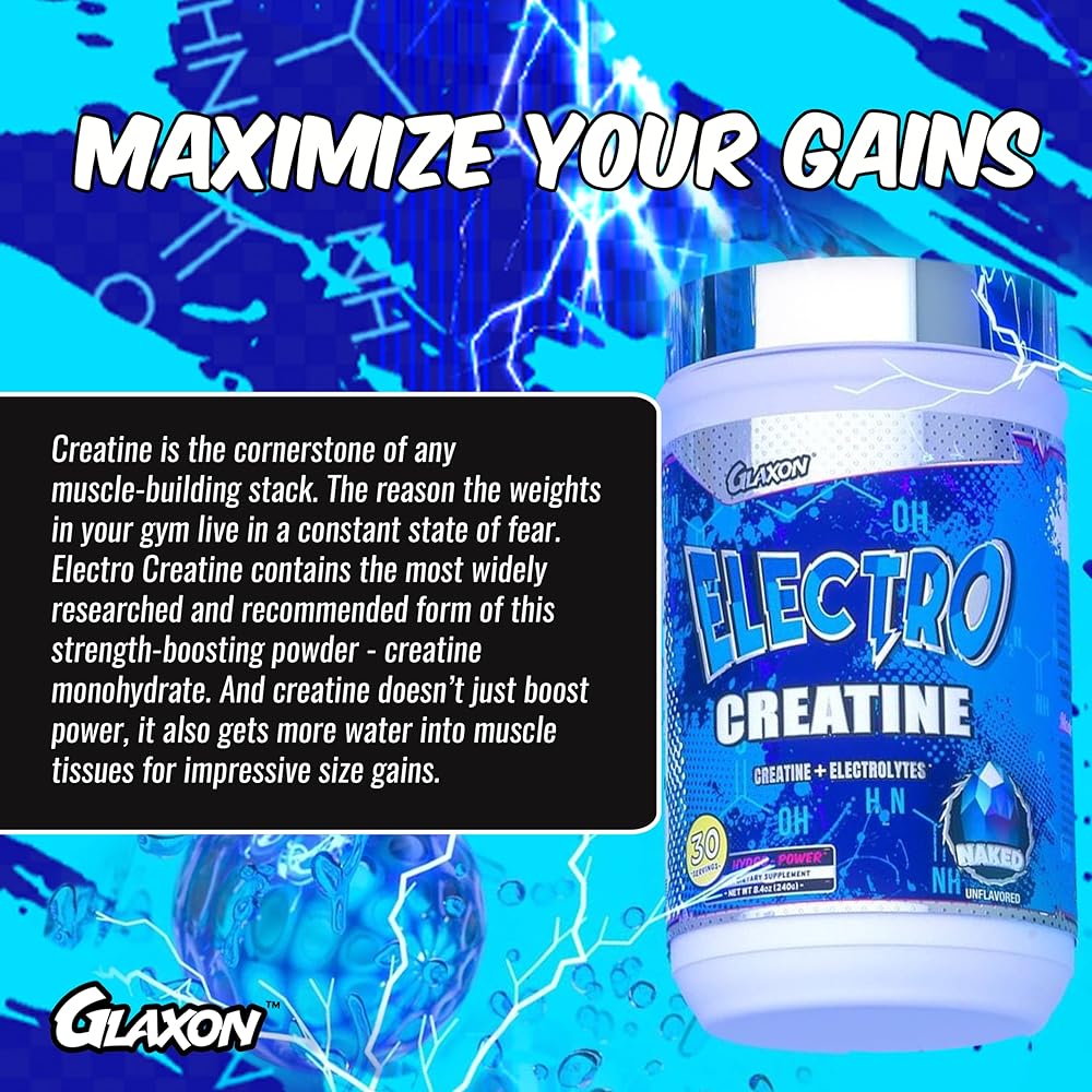 MAXIMIZE YOUR GAINS: Creatine is the cornerstone of any muscle-building stack. The reason the weights in your gym live in a constant state of fear. Electro Creatine contains the most widely researched and recommended form of this strength-boosting powder - creatine monohydrate. Creatine also drives water into muscle tissues which not only makes muscles look fuller, it helps increase power and muscle growth for impressive gains.