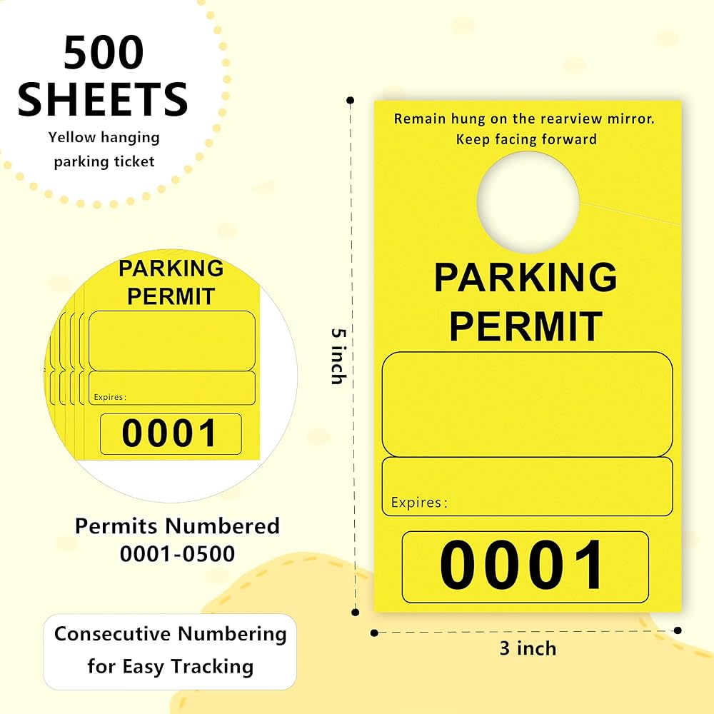 500 Pcs Yellow Parking Permit Hang Tag 2 Part 3x5 Inch Mirror Hang Tags Car Hang Tags Parking Permit Car Parking Tags Numbered Temporary Parking Passes with Tear-Off Stub Numbered 0001-0500 (Yellow)