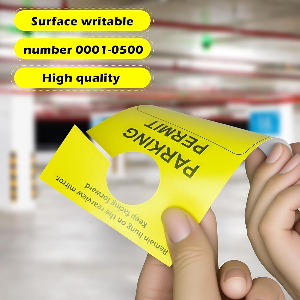 Effective Parking Management System – This bulk 500-pack of yellow parking hang tags is sequentially numbered from 0001 to 0500, offering an efficient way to track and manage authorized vehicles. The blank front side provides ample space for adding dates, names, locations, or custom notes, making them ideal for both short-term and extended parking use.