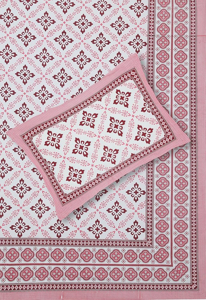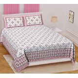 Marusthali Cotton New Bed Sheets King Size Block Printed Handmade Sanganeri Bedsheet Bedcover Bedspread Bed Cover with 2 Pillow Cases 100% Cotton Bedsheets 108 x 108 inches (Pink)