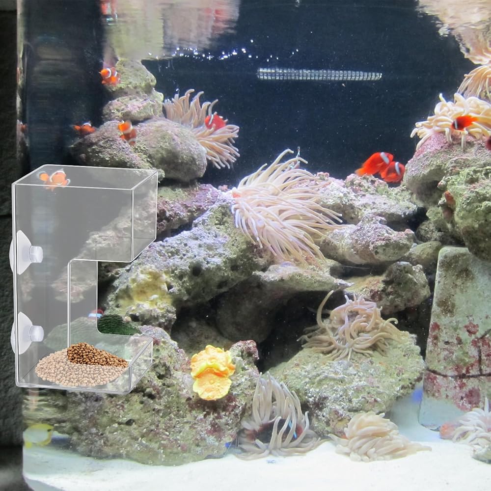 Secure Attachment: Equipped with 2 suction cups, this fish tank feeder can be easily fixed to the inner wall of your aquarium, preventing any movement or tipping, ensuring a stable feeding environment.