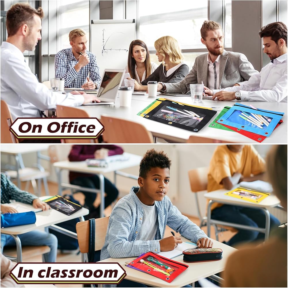 ⭐⭐Clear Window Design and Easy Sorting - Each pencil binder has a high clear PVC window to allow you sort and fine your items easily. There is 6 color options to help you distinguish documents easily. Vivid pencil pouch bags will color your life in daily.