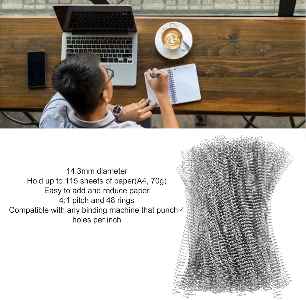 excellent Binding Solution: Our 100Pcs 14.3mm iron spiral binding coils are ideal for letter size paper, with a capacity of up to 115 sheets of A4 paper, making them excellent for binding engineering documents, business projects, and more.