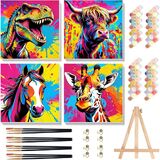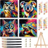 Arttoplus 4 Pack Paint by Numbers Kit for Kids with Frame,Cute Animals Kids Paint by Numbers Ages 4-6-8 with Wooden Easel,Easy DIY Acrylic Oil Painting by Number for Gift Home Wall Decor(8x8 inch)