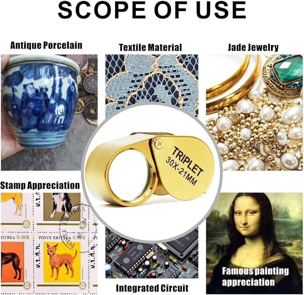 The pocket size is convenience to carry, you can use it in everywhere and every time.Compact Design Provides 30X Magnification.For Gems, Coins, Antiques, Stamps, Reading, Inspection etc.