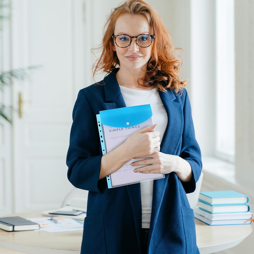【Efficient Classify & Search】- The Binder Pockets are transparent, and with snap button & label, you will keep contents visible and makes finding items so easy without opening your document pouch, help sort things out, find things quickly. Binder folder is a sensible investment for anyone who wants to make their life easier and more efficient.