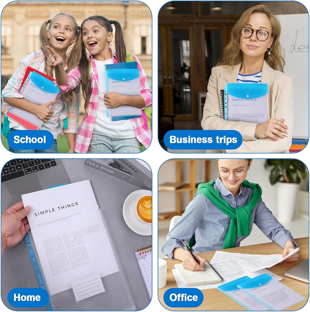 18 Pcs Binder Pocket Organizer Folders, Expandable Folders Plastic Envelopes Binder Folders with 11 Holes for 2/3/4 Ring Binder, Document Pouch with Snap Button and Label for School Office Home