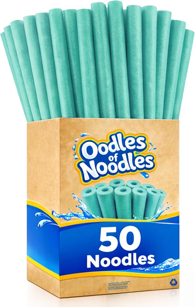 Oodles of Noodles Deluxe Rainbow Swimming Pool Noodles Foam- Pack of 50 - Approx. 48 inch x 2.5 inch Multi-Purpose Foam Tubes, Pool Floats for Water Fun, Exercise, Crafts, Padding, Insulation & More
