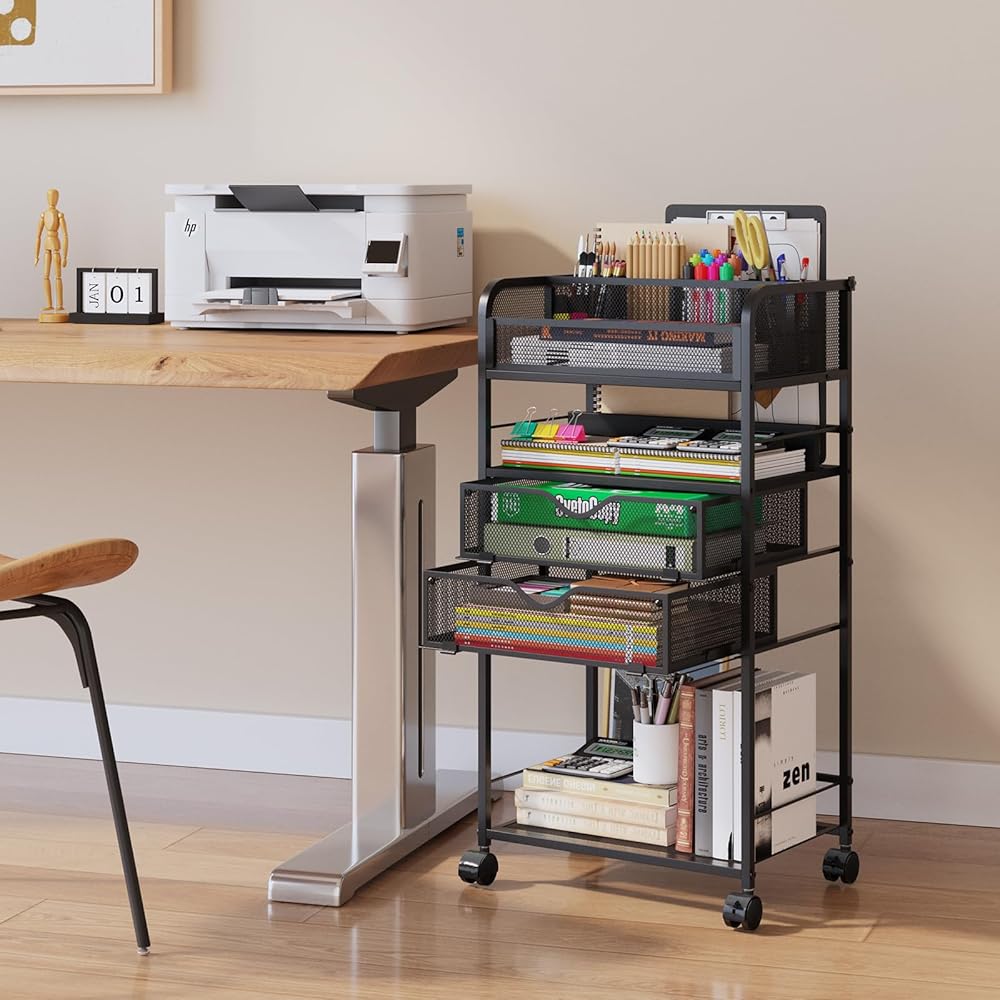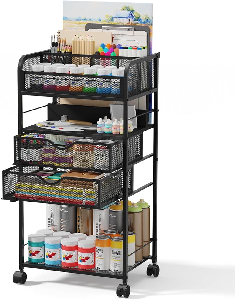Homsorout Art cart, 5 Tier Rolling Cart - Utility Cart with Storage Drawer and Wheels, Versatile Art & Craft Organizer for Home, Office, or Studio Ideal for Storing Brushes, Paints (Black)