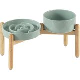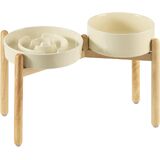 Rasied Wooden Stand: Raised ceramic dog bowls provide dogs with correct eating posture,improved reducing bloating and neck strain with dogs,and prevents indigestion problem.