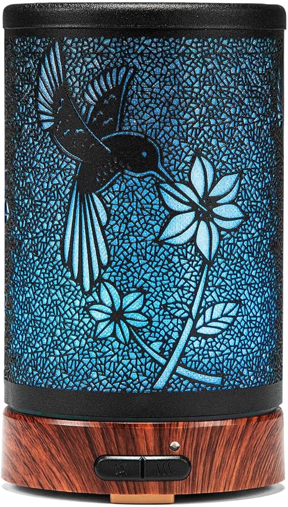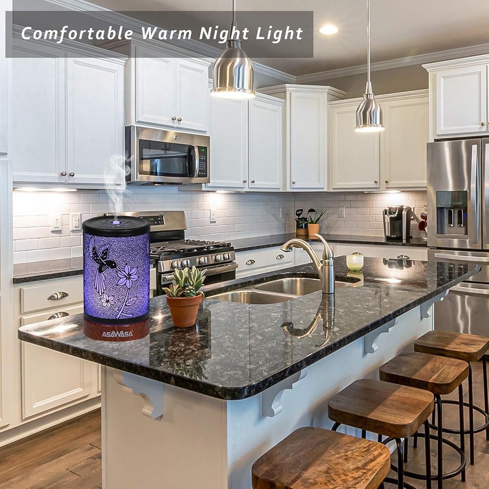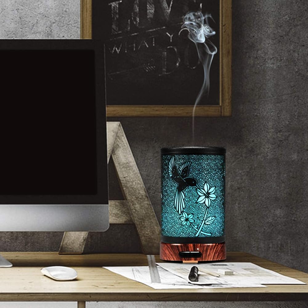 Diffusers for Essential Oils,ASAWASA Essential Oil Diffuser with Waterless Auto Shut-Off, Metal Art Aromatherapy Humidifier with Multi Color Changed Night Light,Ideal for Home Spa Yoga(Bird)