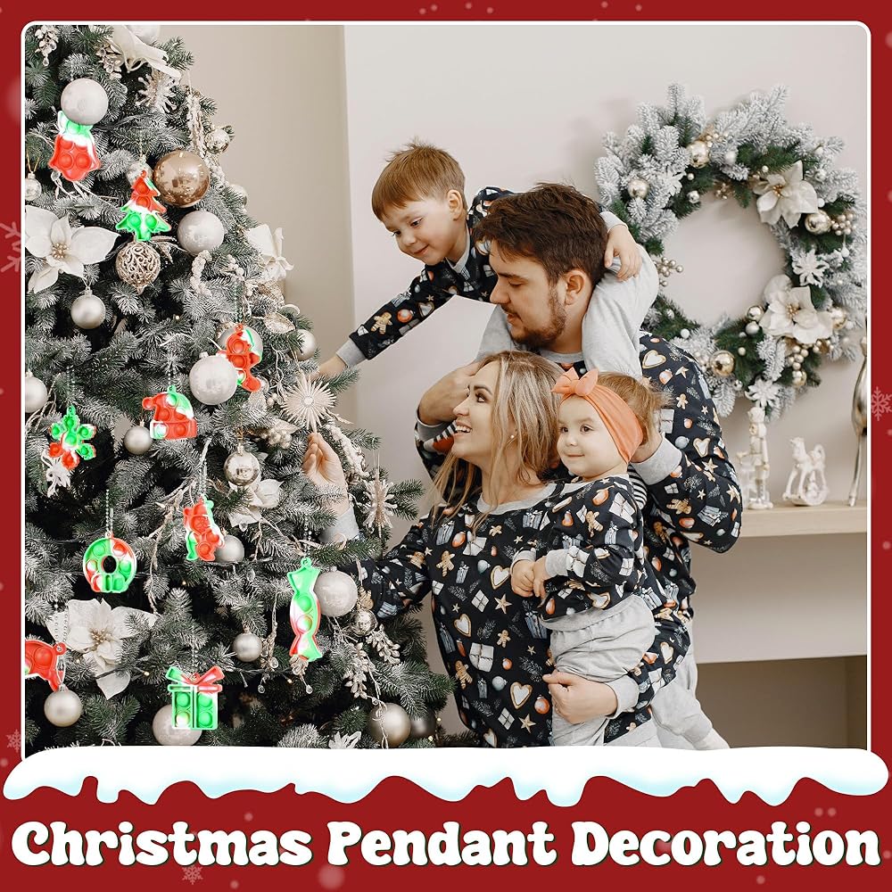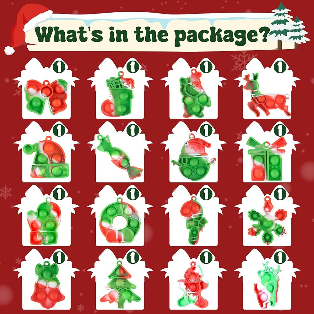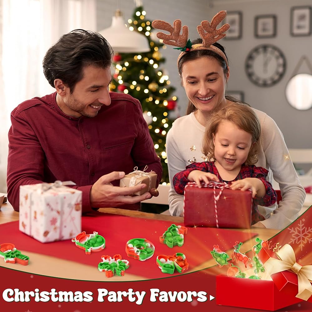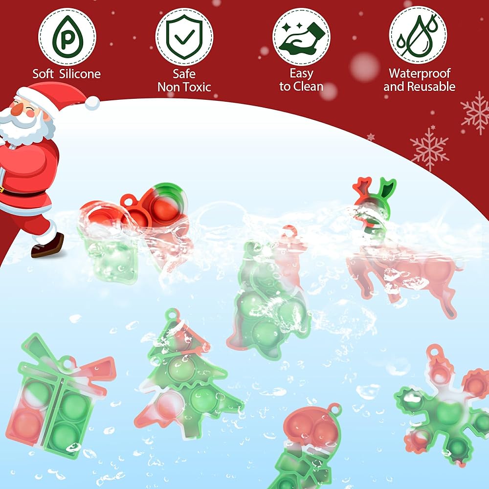 24 PCS Christmas Bulk Fidget Toys,Christmas Party Favors Mini Pop Keychain Set Push Bubble Sensory Toy Toddler Kids Girls Boys Stocking Stuffers Christmas Goodie Bags Gift for Student Classroom Prize
