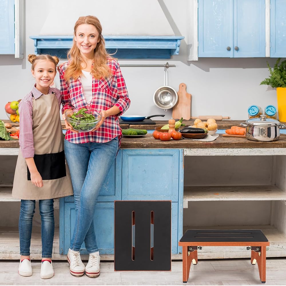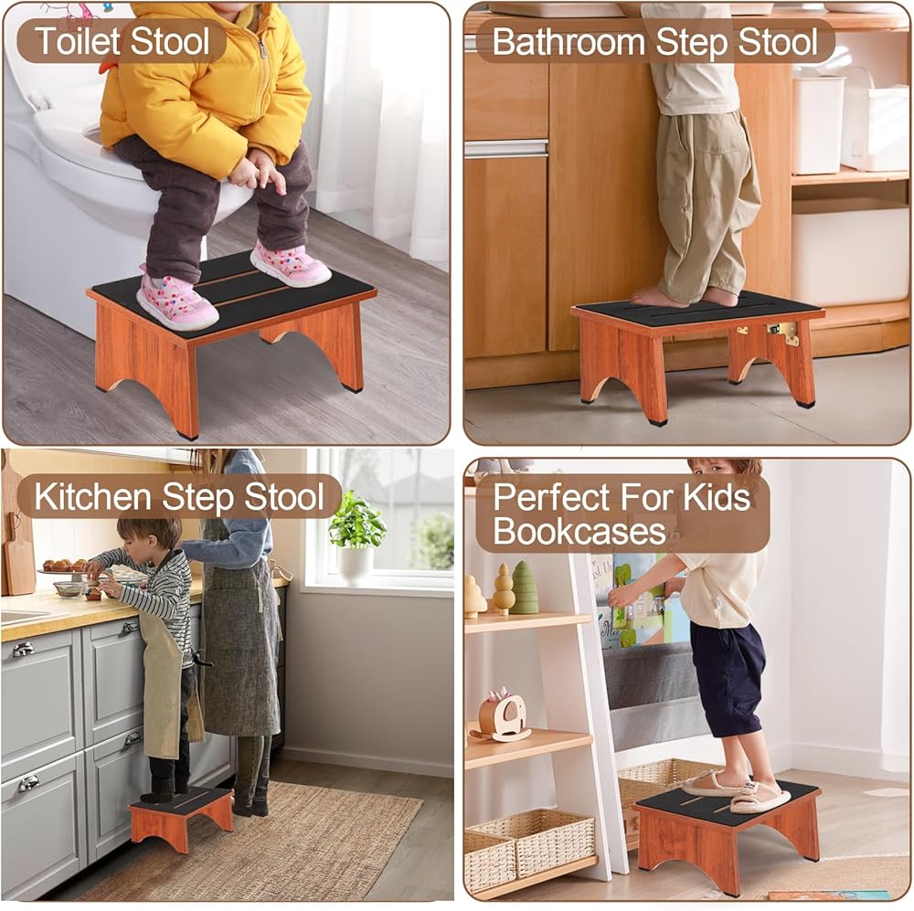 Sturdy & Safety: The collapsible step stool has a sturdy structure, stable and durable, fully covered non-slip platform, safety locking ladder legs and thickened rubber ladder feet. Foldable wooden step stool is designed for the elderly to serve as a reliable bathroom step stool, bathtub step stool, bedside step stool, rv step stool which can support up to 450 pounds and provide a safe stepping experience every time