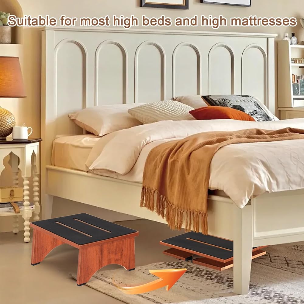 Adaptable Environment: This 5.5 inch bedside step stool comes with anti-slip tapes and pads to improve reach and independence, while ensuring safety in different areas such as the bathroom, kitchen, or bedroom. Perfect as a bedside step stool for elderly or bed steps for high beds for adults and its portable design can be easily used in a variety of scenarios to meet various daily needs