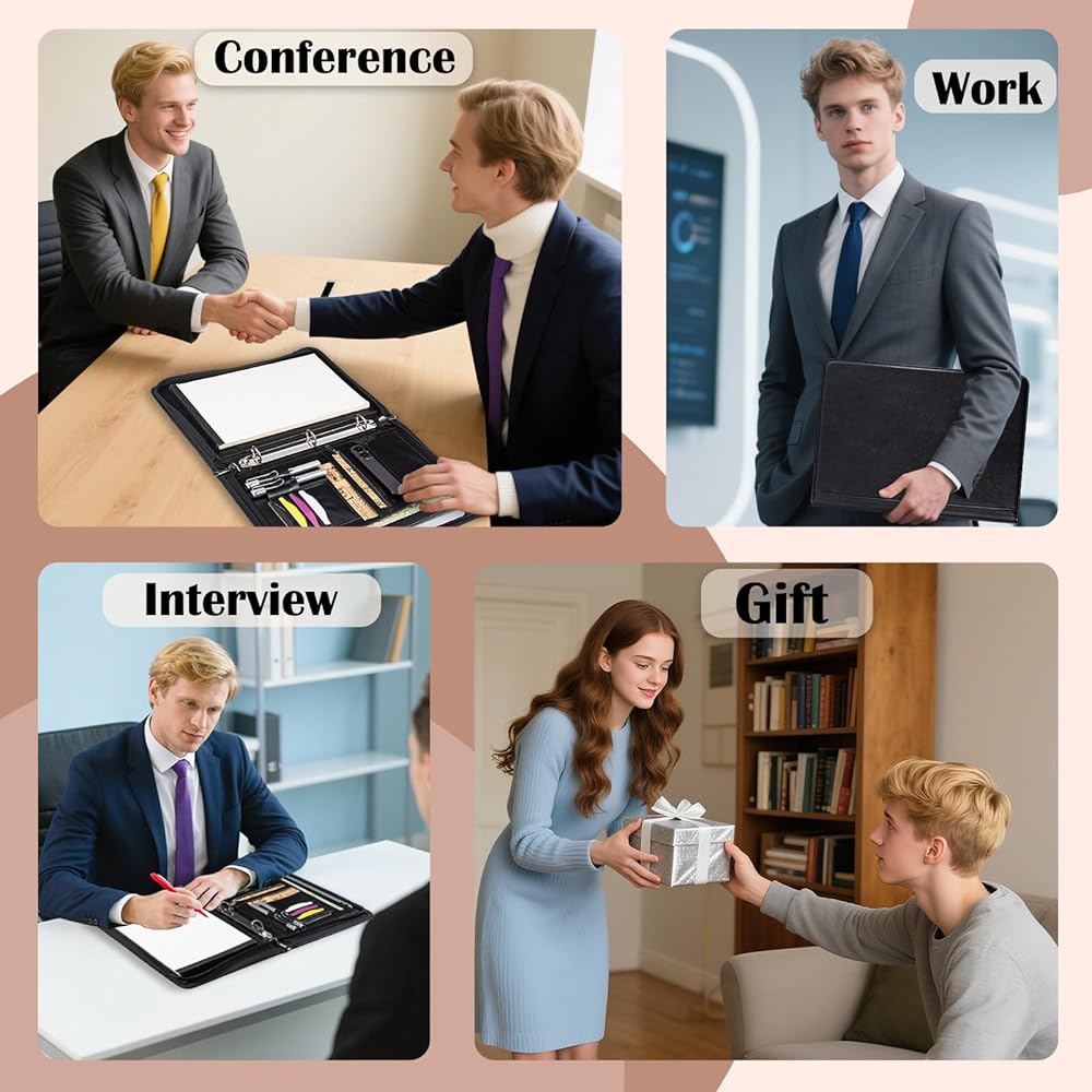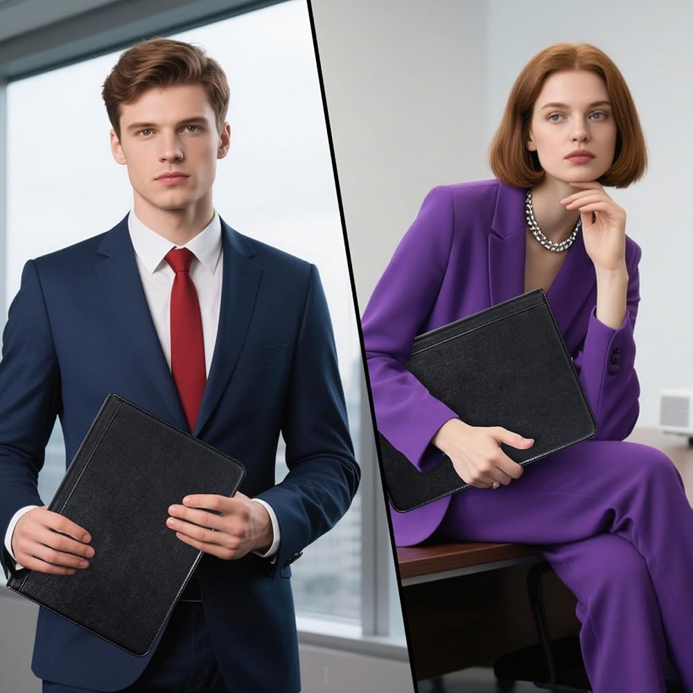 【Secure and Versatile - Padfolio with Zipper】The portfolio with 3 ring binder features a zipper to ensure the safety of your resumes, important documents, laptop, and cards. Additionally, the interior of padfolio for men include multiple compartments, keeping your essentials neatly organized and within easy reach, helping you stay confident and composed during interviews and work.