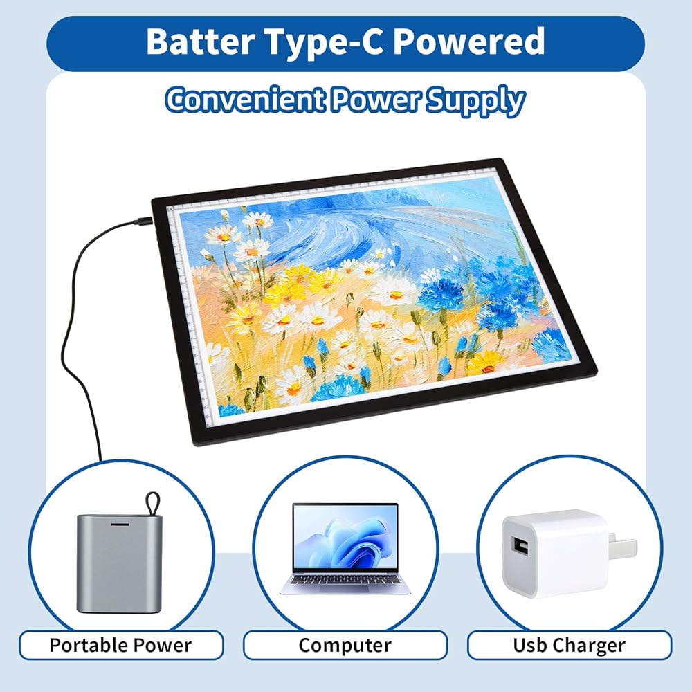 【Versatile Light Pad】An essential tool for drawing, tracing, sketching, animation, viewing X-rays, calligraphy, diamond painting, architectural drafting, sewing projects, fashion design, and industrial design. Inspires creativity in young artists and makes a great gift for holidays, birthdays, or special occasions.